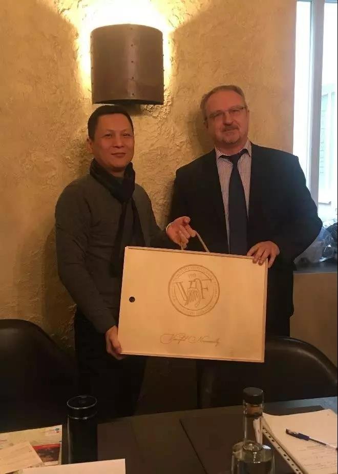 ▲捷方向金立方董事長贈送禮物——捷克國家級卡通形象“小鼴鼠”,寓意中捷友誼長青