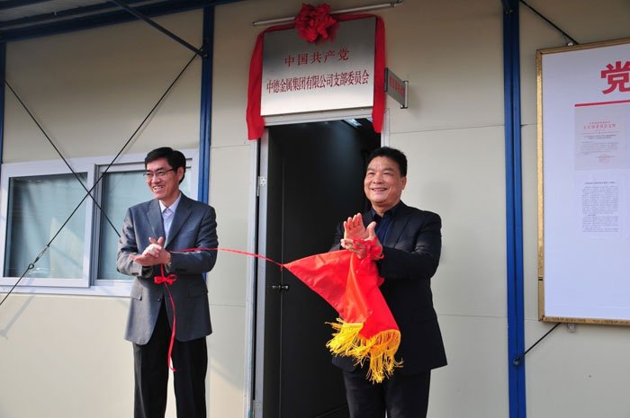陳永正與孔博為中德金屬集團(tuán)有限公司共青團(tuán)支部委員會(huì)揭牌