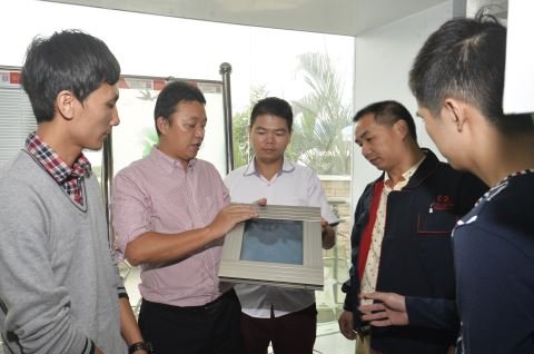 宏光公司技術(shù)人員探討如何在技術(shù)引進中提高產(chǎn)品能效。涂英鵬 攝